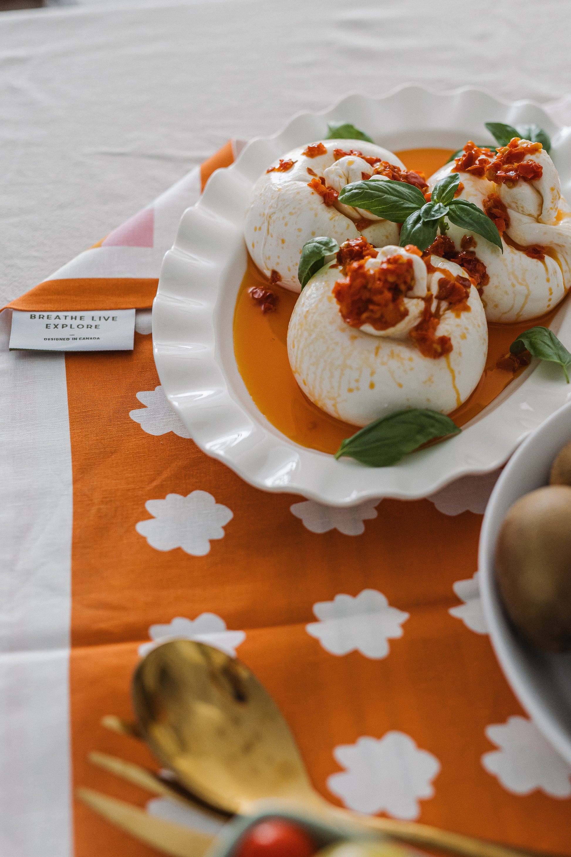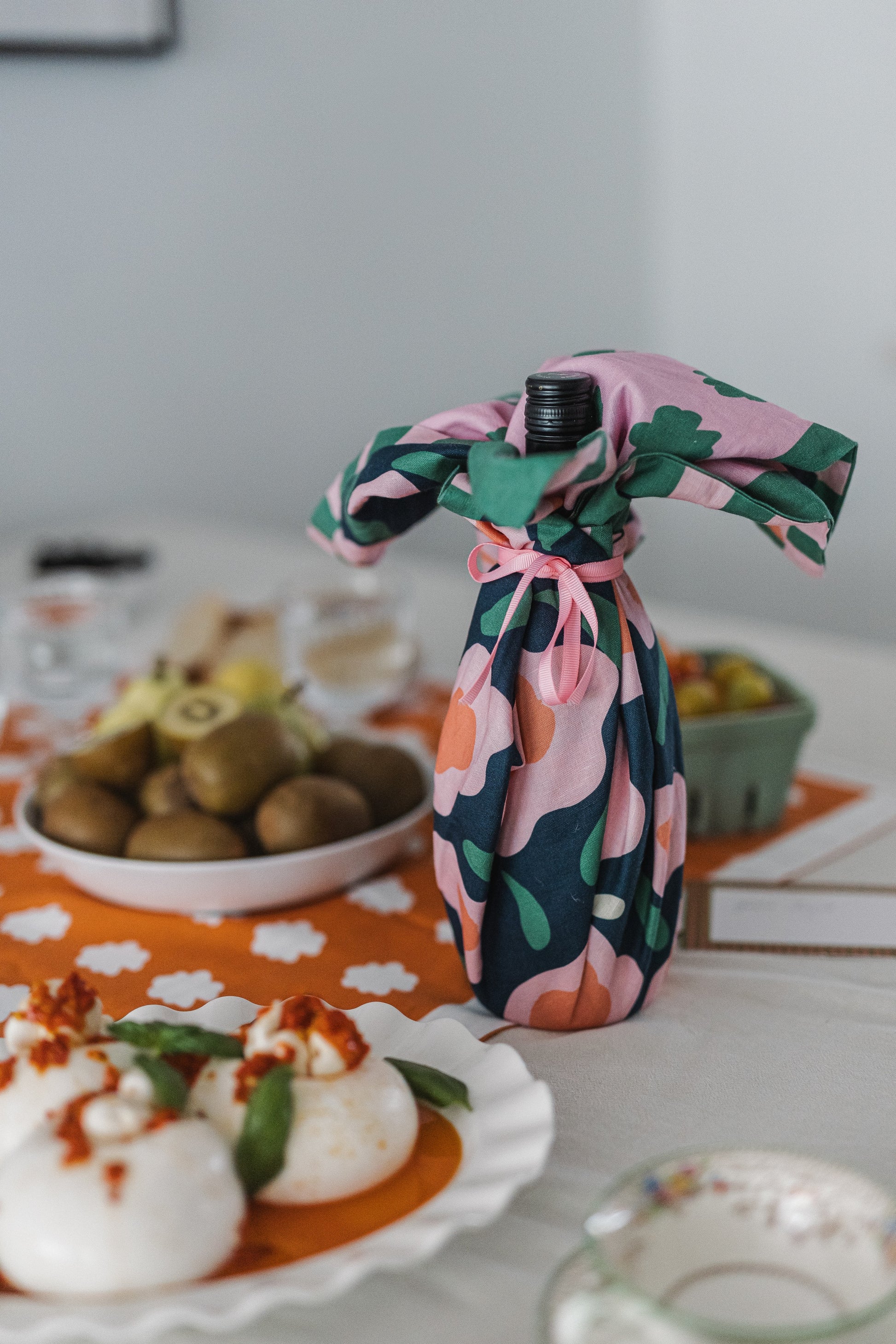 Our fabric wrap features two reversible signature prints, adding an artful touch to table styling, gift-giving, or as a cherished keepsake. Its multi-use design makes it a unique and versatile piece to have.