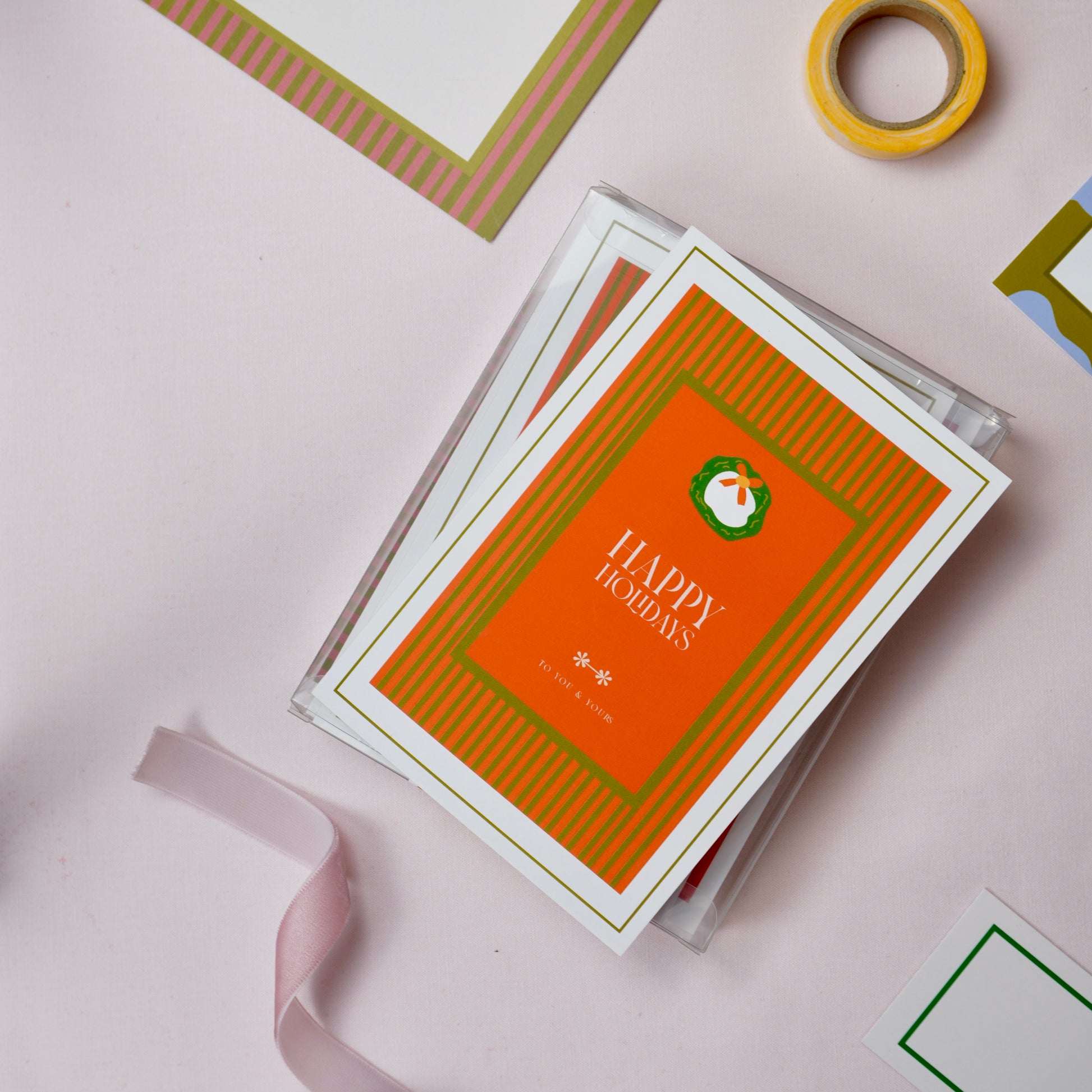 Our Happy Holidays card features a charming design that captures the spirit of joy and warmth. It's perfect for sending heartfelt holiday wishes and bringing a touch of cheer to the season.