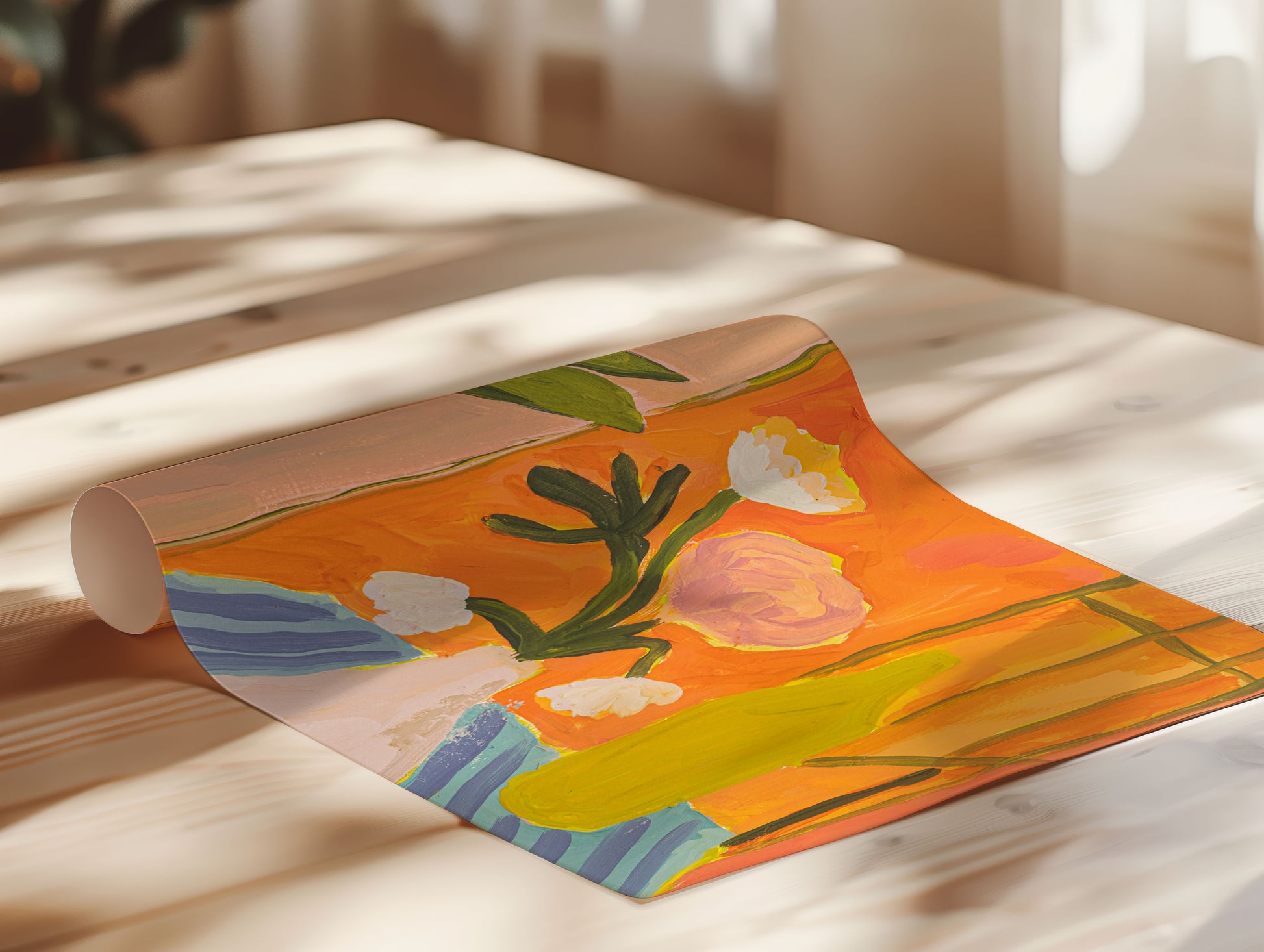 This piece honors growth, healing, and the transformation that happens within. It features bold colors and still life of florals, painted with love by Oris Eddu, and printed on softly textured, archival paper.