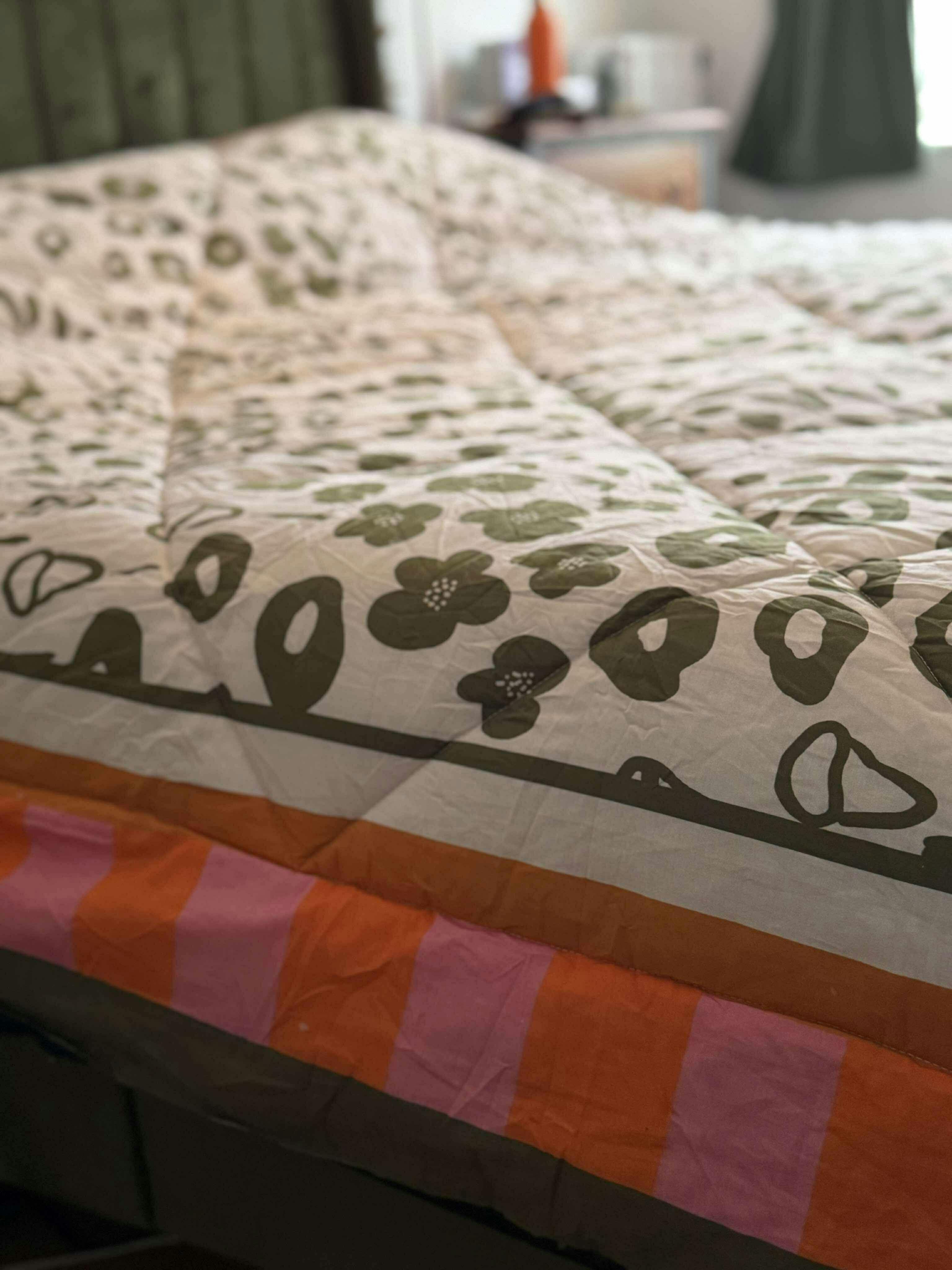 Our artist-designed quilted blankets are inspired by Oris Eddu's floral patterns and are crafted to bring color and comfort to your everyday moments. Made for cozy mornings, slow evenings, and everything in between.