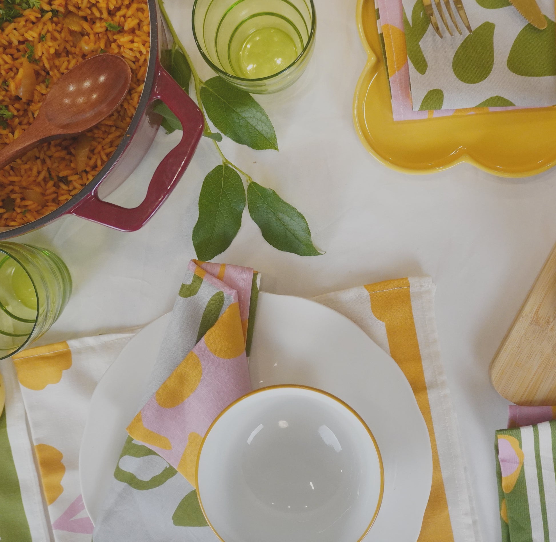 Our tea towels are thoughtfully crafted with care - it features Oris Eddu's artwork from our latest collection, to bring a sense of calm to your kitchen. This set of two includes folded hems and a white hang tab on the back for easy hanging—perfect for adding a touch of art to your everyday routine.